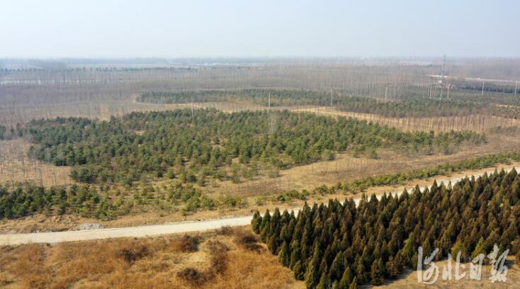 2021年2月25日,無人機(jī)航拍雄安新區(qū)“千年秀林”。