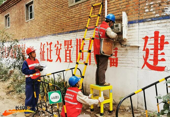 在雄安新區(qū)征遷現(xiàn)場(chǎng),共產(chǎn)黨員服務(wù)隊(duì)隊(duì)員正在為村民拆除表計(jì)。冀洋 圖