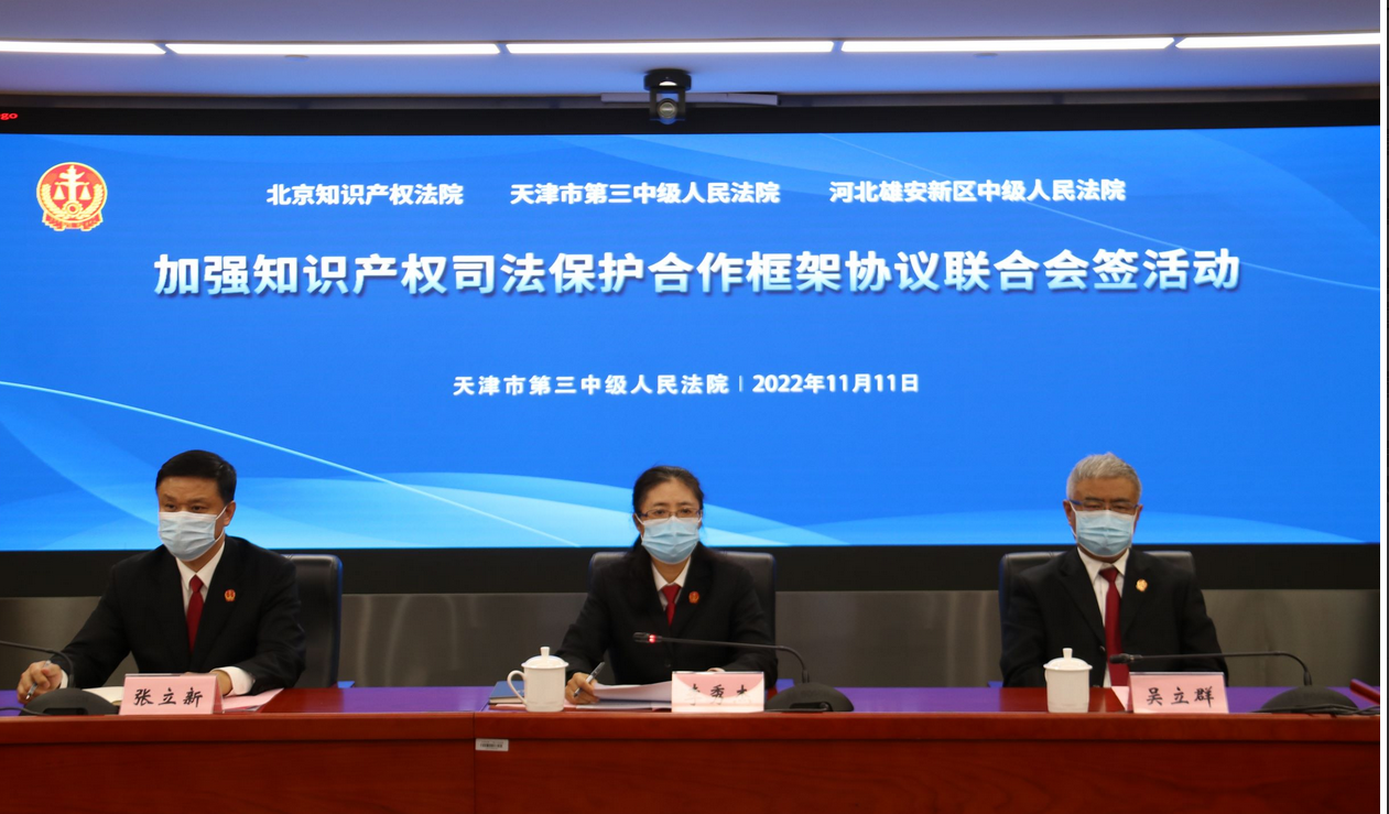 黨的二十大報告明確提出“加強知識產(chǎn)權(quán)法治保障,形成支持全面創(chuàng)新的基礎(chǔ)制度”,同時提出“促進(jìn)區(qū)域協(xié)調(diào)發(fā)展”并將“推進(jìn)京津冀協(xié)同發(fā)展”擺在首位。11月11日,北京知識產(chǎn)權(quán)法院與天津市第三中級人民法院、河北雄安新區(qū)中級人民法院共同簽署《加強知識產(chǎn)權(quán)司法保護(hù)合作框架協(xié)議》,深入貫徹落實黨的二十大精神和黨中央決策部署,開啟京津冀知識產(chǎn)權(quán)協(xié)同保護(hù)事業(yè)新征程,為京津冀協(xié)同發(fā)展和國家創(chuàng)新驅(qū)動發(fā)展戰(zhàn)略實施作出新的更大貢獻(xiàn)。
