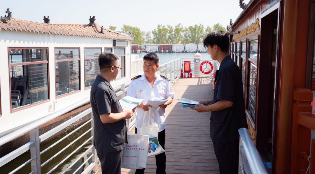 干警們還走進(jìn)碼頭、游客服務(wù)中心、船艙等,選取白洋淀流域集中管轄以來兩級法院審理的非法捕撈水產(chǎn)品、非法排污等典型案例進(jìn)行以案說法,深入淺出地講解了破壞生態(tài)環(huán)境帶來的嚴(yán)重后果以及需要承擔(dān)的法律責(zé)任,呼吁現(xiàn)場游客從身邊小事做起,做白洋淀流域環(huán)境保護(hù)的宣傳者、倡導(dǎo)者、行動(dòng)者。并結(jié)合刑法、環(huán)境保護(hù)法等法律法規(guī),解答現(xiàn)場群眾和游客們提出的環(huán)境保護(hù)相關(guān)法律問題。