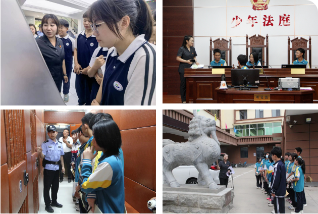 活動分為兩個部分。首先由干警帶領(lǐng)同學(xué)們參觀法院的基本設(shè)施。同學(xué)們依次體驗了訴訟服務(wù)中心的“一站式”訴訟服務(wù),深入感受“未成年人心理疏導(dǎo)室”和“少年法庭”營造的溫馨、和諧的審判環(huán)境,認(rèn)真觀察了羈押室、囚車以及各種警用裝備的精妙設(shè)計,“沉浸式”體驗了法院的工作氛圍。