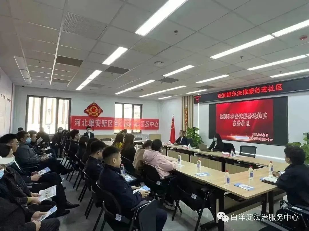培訓初始,河北雄安新區(qū)白洋淀法治服務中心秘書長花鑫對“法潤雄東”活動背景及法治服務中心工作職能進行介紹。