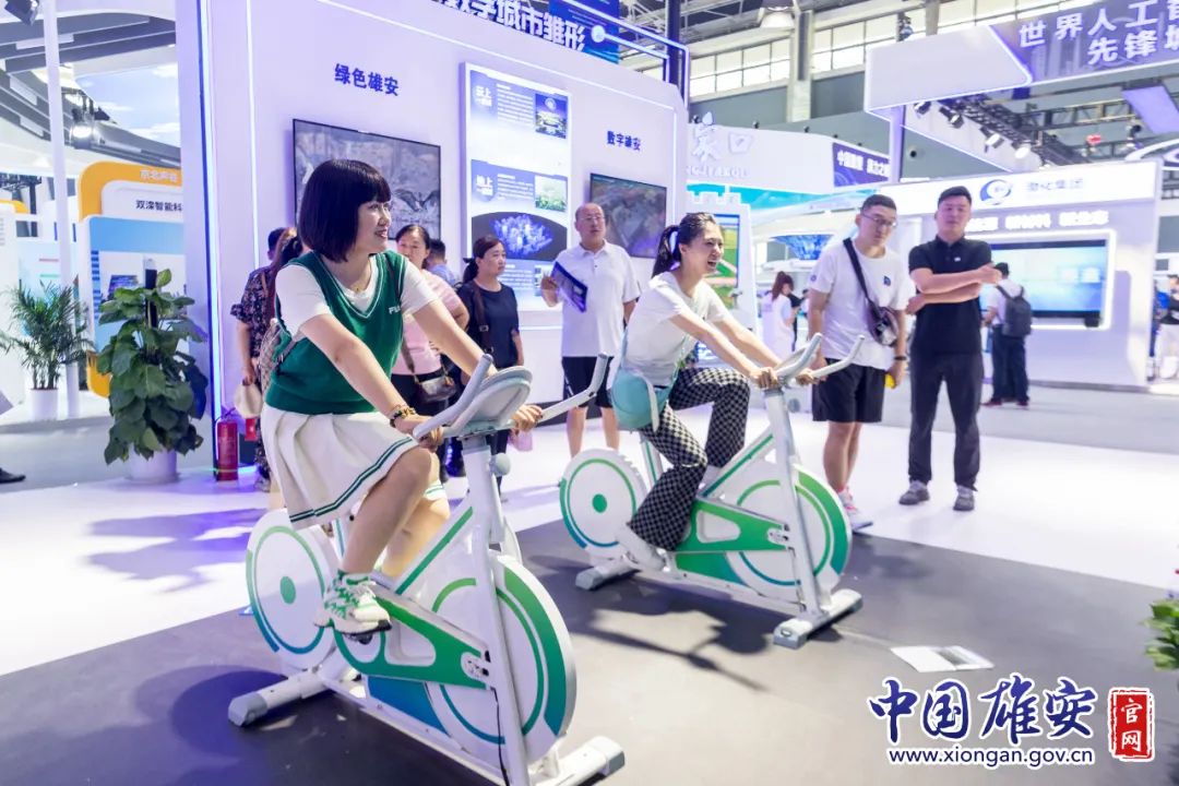 2023中國(guó)國(guó)際數(shù)字經(jīng)濟(jì)博覽會(huì)雄安展區(qū)的自行車(chē)體驗(yàn)區(qū)。中國(guó)雄安官網(wǎng)牛思佳 攝