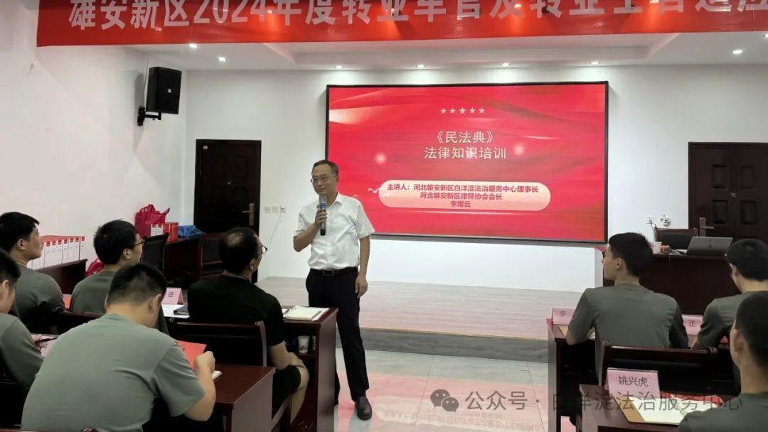 8月1日,河北雄安新區(qū)管理委員會(huì)公共服務(wù)局民政退役軍人組委托白洋淀法治服務(wù)中心為2024年度轉(zhuǎn)業(yè)軍、士官開展法治培訓(xùn)。