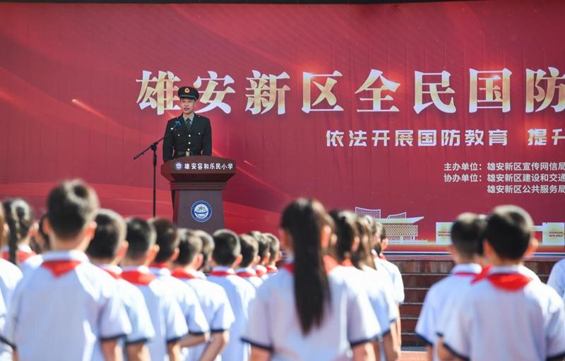 在第24個全民國防教育日來臨之際,雄安新區(qū)開展2024年度“全民國防教育月”進校園、進工地活動。