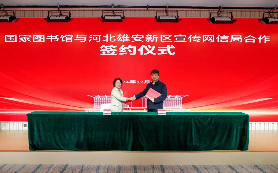 人民網雄安12月9日電 (記者宋燁文)日前,國家圖書館與雄安新區(qū)宣傳網信局在雄安科創(chuàng)中心舉行合作簽約儀式,雙方將共建雄安圖書館暨國家圖書館雄安分館。文化和旅游部公共服務司副司長閆曉東,國家圖書館黨委書記、副館長陳櫻,雄安新區(qū)黨工委委員、宣傳網信局局長邊建國出席簽約儀式。