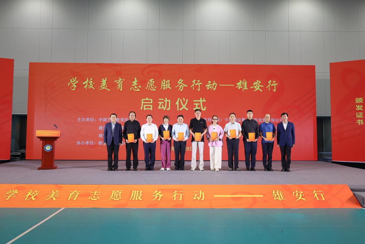 啟動儀式上,中國藝術(shù)教育促進會以及雄安新區(qū)教育發(fā)展基金會相關(guān)負責(zé)人為首批志愿服務(wù)專家代表、愛心企業(yè)頒發(fā)了志愿證書。國家一級演員、程派青衣李海燕作為志愿者代表發(fā)出倡議,呼吁更多藝術(shù)家、美育專家和優(yōu)秀教師加入志愿服務(wù)行列。