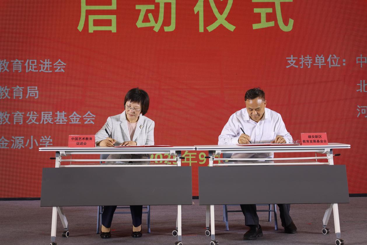 人民網(wǎng)雄安9月26日電 (記者宋燁文)9月25日,由中國藝術(shù)教育促進會、雄安新區(qū)教育局、雄安新區(qū)教育發(fā)展基金會聯(lián)合主辦的“學(xué)校美育志愿服務(wù)行動——雄安行”項目啟動儀式在雄安容和金源小學(xué)舉行,現(xiàn)場,中國藝術(shù)教育促進會與雄安新區(qū)教育發(fā)展基金會簽訂合作框架協(xié)議。