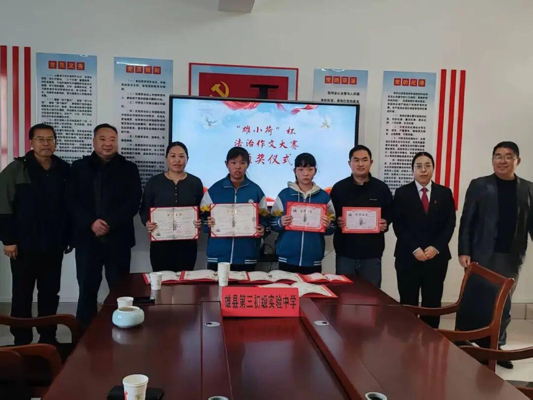 法治的陽光,照耀青春成長之路;文字的力量,承載少年法治夢想。10月24日,隨著“雄小荷”杯法治作文大賽評比結(jié)果的出爐,賽事組委會帶著榮譽與成果,相繼走進雄縣第二、第三初級實驗中學(xué)、雄縣第三高級中學(xué)初中部,為獲獎師生頒獎。