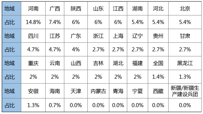 (注:最高人民法院、最高人民檢察院、公安部、司法部等中央政法機關輿情地域編碼為“全國”)