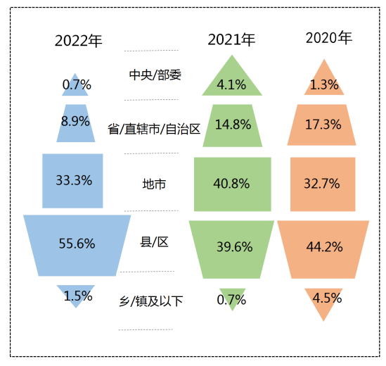 3. 層級:縣區(qū)級輿情應對占比過半 市級以上單位輿情壓力銳減