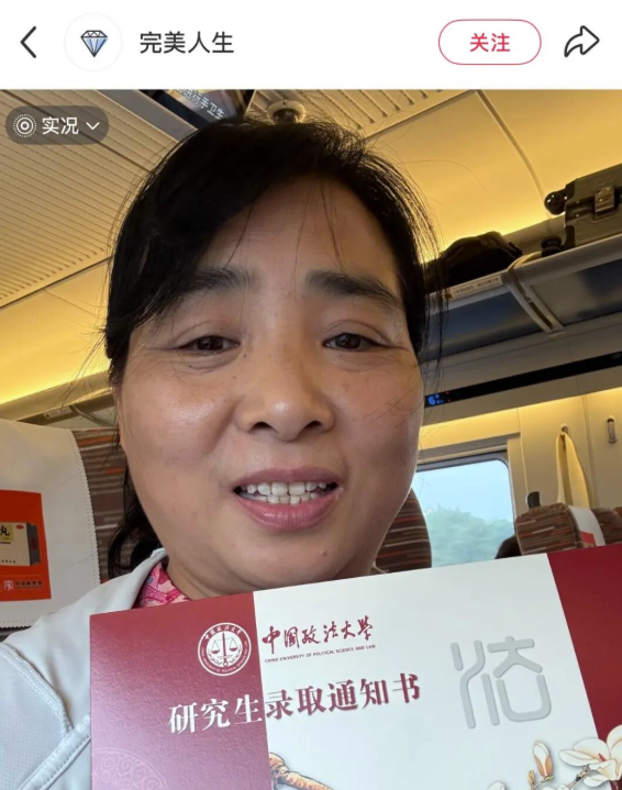 8月30日,社交平臺上流傳著一則“54歲河南阿姨考上中國政法大學研究生”的勵志帖文。該網(wǎng)民賬號名為“美麗人生”,稱自己用了30年時間,從河南的縣城考到北京的高校,現(xiàn)在在去北京西站的火車上,帖文所配照片為一名中年女性與一張“中國政法大學研究生錄取通知書”的合影。帖文內(nèi)容引發(fā)關注,獲部分網(wǎng)民稱贊“勵志”。9月1日,該網(wǎng)民在另一篇帖子中回應“大齡研究生無意義”等質(zhì)疑,稱“退休后時間很充?!薄爸灰钪?,任何時候做任何事都不為晚”,再次引發(fā)眾多網(wǎng)民留言支持。9月3日上午,中國政法大學黨委宣傳部向澎湃新聞回應表示,該校已錄取的2025級碩士新生中,“沒有50歲以上的、河南籍的學生”,網(wǎng)民直呼“又是一起編造的‘勵志’騙局”。另據(jù)媒體消息,該賬號IP屬地顯示為北京,粉絲1907人,獲贊與收藏高達18.8萬。目前該賬號被禁言,內(nèi)容已清空。