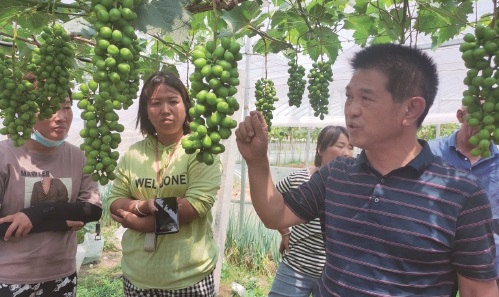 夏邑縣農(nóng)廣校聘請中國農(nóng)科院鄭州果樹研究所專家劉三軍博士到北嶺鎮(zhèn)現(xiàn)場指導(dǎo)葡萄生產(chǎn)管理技術(shù)。 王留標 攝