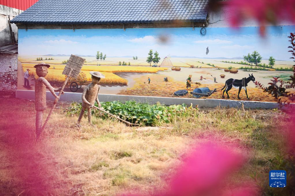 8月17日在河南省漯河市舞陽縣九街鎮(zhèn)胡崗村拍攝的農(nóng)民畫墻畫。