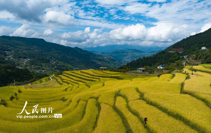 9月25日,湖北省宜昌市秭歸縣沙鎮(zhèn)溪鎮(zhèn)長春村豐收的高山冷水稻田園美麗如畫。