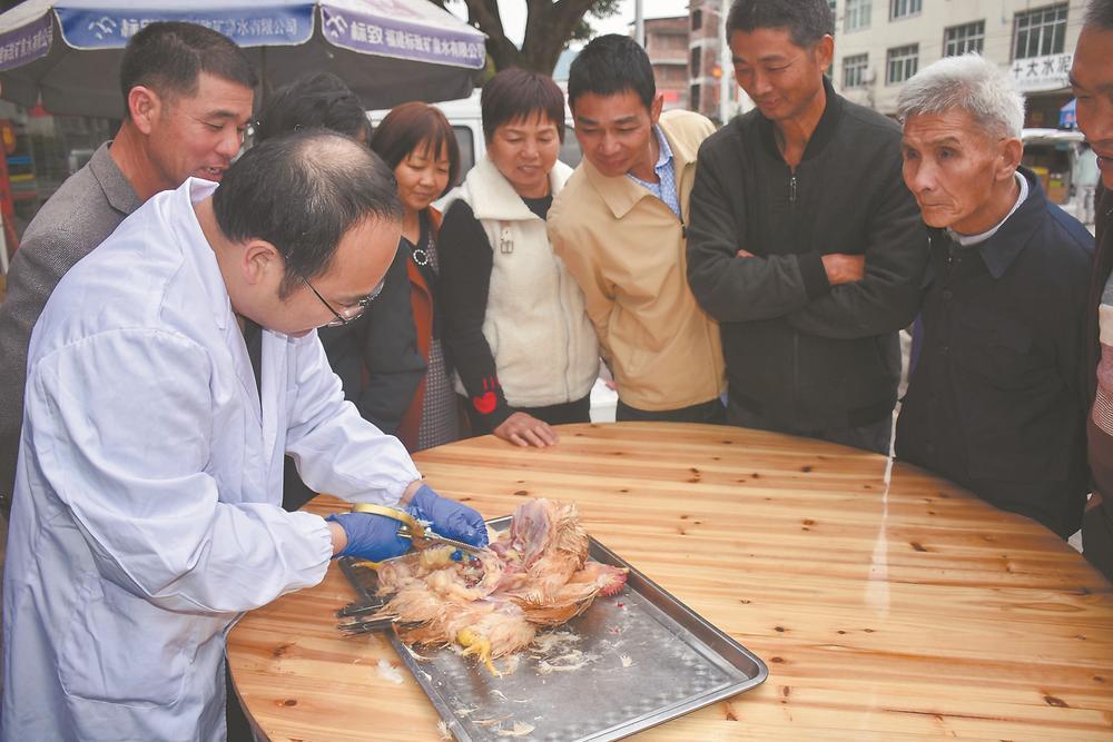 專家現(xiàn)場解剖家禽,講解病理常識。