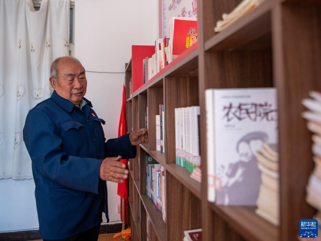 4月18日,李存德在紅星村的農(nóng)家書屋中整理書籍。記者 江文耀 攝