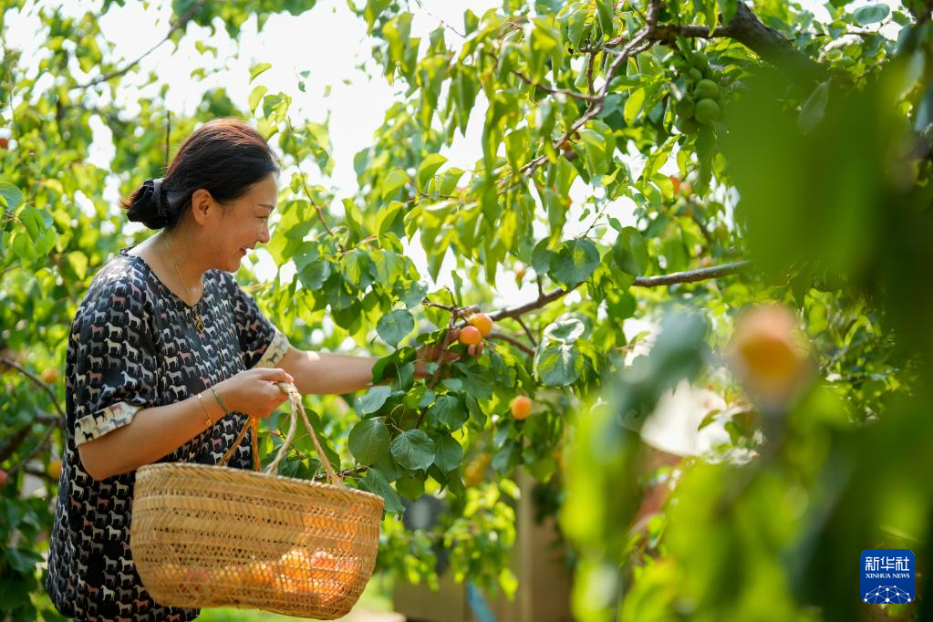 7月3日,市民在河北省唐山市路北區(qū)一處家庭農(nóng)場內(nèi)采摘鮮杏。記者 牟宇 攝