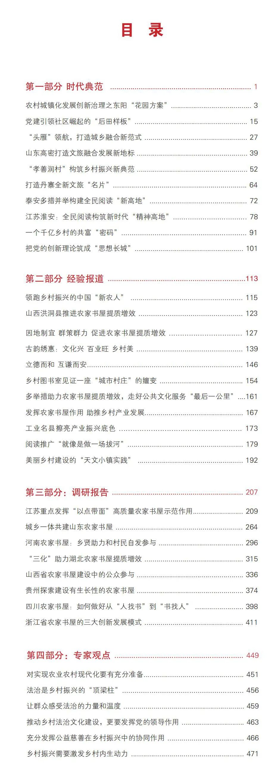 該書圖文并茂,由“時(shí)代典范”“經(jīng)驗(yàn)報(bào)道”“調(diào)研報(bào)告”“專家觀點(diǎn)”四個(gè)部分組成,作品“沾泥土帶露珠”,共計(jì)32萬(wàn)字。透過該書,讀者能看到各地是如何與時(shí)俱進(jìn)創(chuàng)新發(fā)展農(nóng)家書屋、為鄉(xiāng)村振興提供“智慧屋”“充電樁”的;又是如何因地制宜、多措并舉大力發(fā)展產(chǎn)業(yè)經(jīng)濟(jì)的;還能看到各地如何凝聚農(nóng)民群眾的力量、壯大人才隊(duì)伍,使其在鄉(xiāng)村振興中大顯身手……