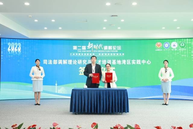 開幕式上,人民調(diào)解雜志社副總編輯孟婷婷宣讀了第二屆新時代調(diào)解論壇征文獲獎名單,與會領(lǐng)導(dǎo)為獲獎作者頒獎。本次征文共評出一等獎?wù)撐?篇、二等獎15篇、三等獎25篇、優(yōu)秀獎20篇,其后舉行了“司法部調(diào)解理論研究與人才培訓(xùn)基地灣區(qū)實(shí)踐中心”簽約與揭牌儀式。