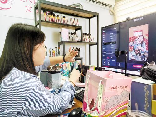 “這款以梅花鹿紋為裝飾的化妝刷,是咱家與頤和園聯(lián)名的六合太平系列套刷,采用人造纖維,柔軟蓬松……”11月3日上午10時許,河北省滄州市青縣馬廠鎮(zhèn)東姚莊村的一個直播間里,主播苑慧妍正手持“艾諾琪”品牌化妝刷進(jìn)行直播。