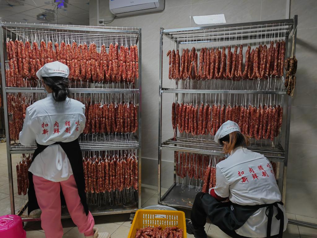 做好土特產(chǎn)文章,發(fā)展特色產(chǎn)業(yè)是實(shí)現(xiàn)鄉(xiāng)村振興的一條重要途徑。在陸川縣,當(dāng)?shù)貒@國家地理標(biāo)志產(chǎn)品陸川豬不斷助推村民致富增收。切割、生產(chǎn)、烘干、包裝……在位于陸川縣珊羅鎮(zhèn)大山村的玉林市浚淇食品有限公司,工人們正忙著生產(chǎn)和包裝臘腸?!澳觋P(guān)將至,臘肉、臘腸、扣肉的生產(chǎn)也迎來旺季?!惫矩?fù)責(zé)人梁滬芳說。