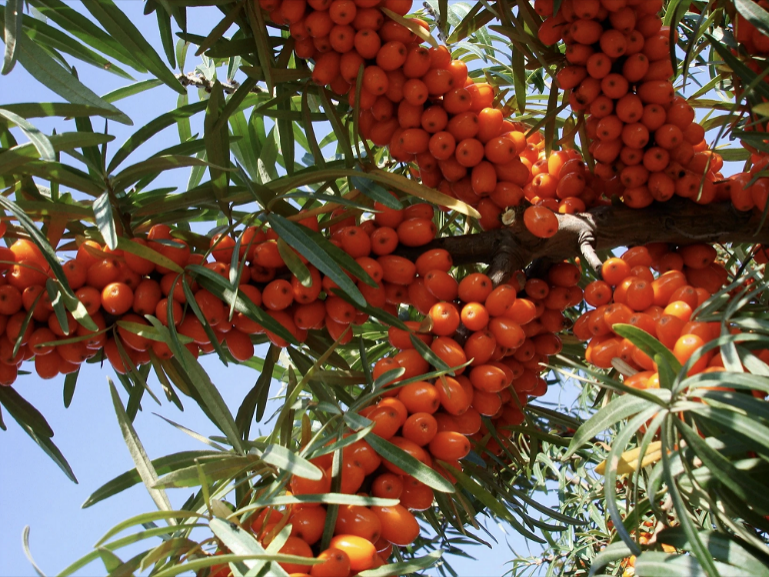 在最貧瘠的土地上生長出茂盛的枝葉和營養(yǎng)豐富的果實(shí),是沙棘這種植物的真實(shí)寫照?!皩L簟丙}堿、荒漠等條件惡劣的土地扎根,形成“地上一把傘,地面一層氈,地下一張網(wǎng)”,防止水土流失,保護(hù)生態(tài)環(huán)境;同時(shí)沙棘“渾身是寶”,澤福一方百姓,帶動一地經(jīng)濟(jì);更憑借藥食同源的特性,營養(yǎng)大眾,為消費(fèi)者帶來有益身體健康的沙棘產(chǎn)品。