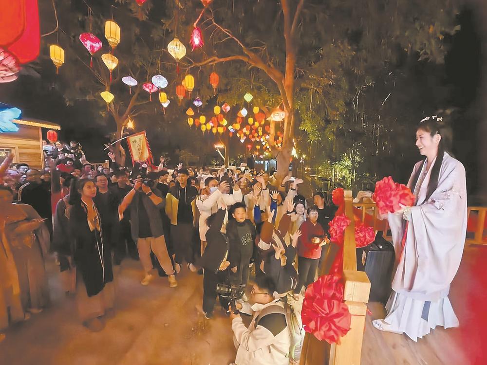為讓游客有更好的文化體驗(yàn),今年元宵節(jié),杏陳鎮(zhèn)聯(lián)合磁窯村策劃了“浪漫元宵·緣定磁窯”沉浸式漢服游園會。當(dāng)晚,身著各式漢服的演員們穿梭在各個景點(diǎn),用“舞蹈+情景劇”的方式為游客獻(xiàn)上民族舞、古箏演奏、拋繡球等精彩表演。