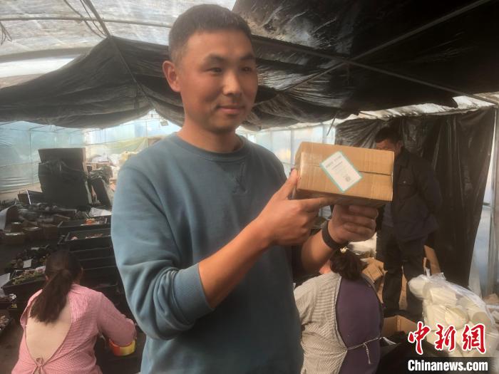 花農(nóng)展示快遞上的“誠信標(biāo)簽” 劉林 攝