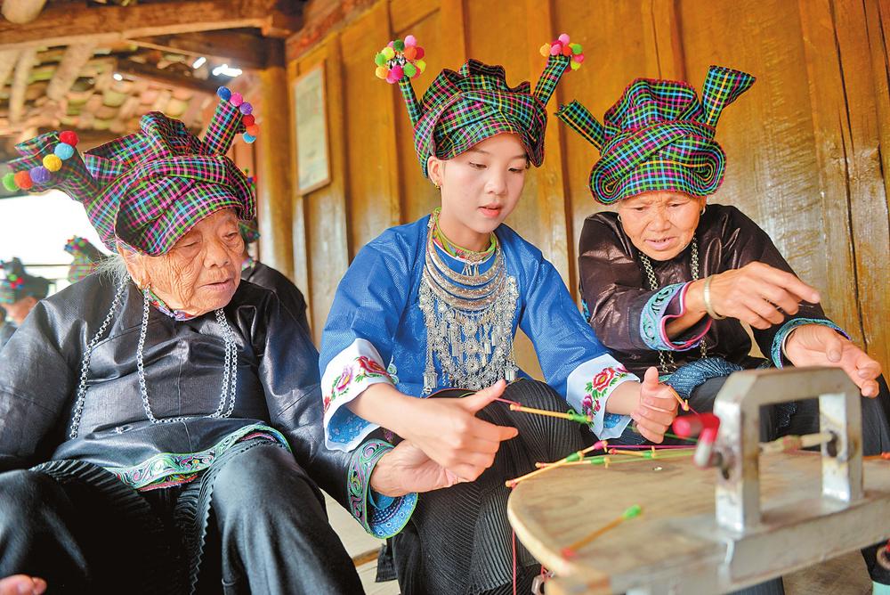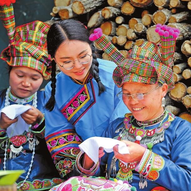 走進云南省文山壯族苗族自治州廣南縣者兔鄉(xiāng),綠美鄉(xiāng)村間,婦女們背著娃、繡著花的幸福畫面隨處可見。她們用一針一線繡出美好生活,將蘊藏著古老文化的壯繡巧妙融入時尚元素,將“指尖優(yōu)勢”轉(zhuǎn)化為“增收優(yōu)勢”。