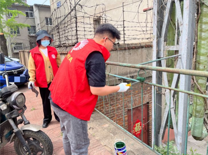 活動中,工作站的成員們個個積極踴躍,不怕臟、不怕累、不怕曬,頂著炎炎烈日,分工合作、齊心協(xié)力,經(jīng)過一天的粉刷,把因受日曬雨淋、風雨侵蝕、塵土污染等原因導致的油漆淡化、銹跡斑斑、漆面開裂等問題徹底解決。雖然衣服上、手上、胳膊上沾上了油漆,但大家干得熱火朝天,沒有一句喊苦喊累。經(jīng)過全體工作人員的一致努力,老舊小區(qū)內的欄桿、扶手、躺椅煥然一新,贏得了居民群眾的稱贊。