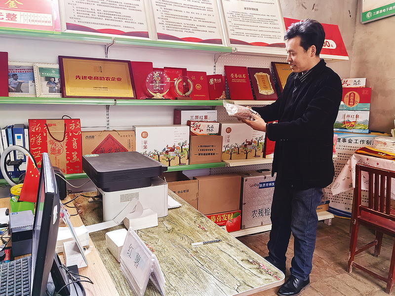 王博今年42歲,學(xué)校畢業(yè)后,曾經(jīng)打過工,也做過小生意。他本就是農(nóng)村娃,對家鄉(xiāng)有著深深的眷戀。返鄉(xiāng)創(chuàng)業(yè)的念頭一旦萌生,王博就遵從內(nèi)心的召喚,回到了家鄉(xiāng)。2018年,隨著三原縣電子商務(wù)進(jìn)農(nóng)村綜合項(xiàng)目初步落地,王博敏銳地意識到電子商務(wù)在農(nóng)村的發(fā)展前景,他嘗試著在村里開網(wǎng)店。
