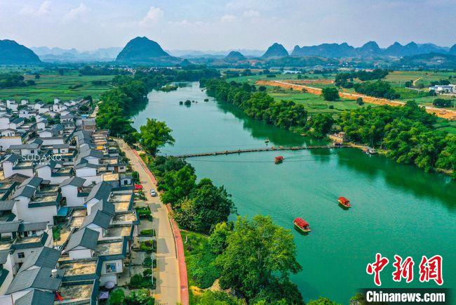 初夏時節(jié),走進卜花村,平坦的村道被長勢正盛的甘蔗林包裹,青瓦白墻的農(nóng)家小院錯落有致。游客在此,可乘花船而行,或騎行于綠道,感受遠山如黛,近水潺潺;亦可參與戶外稻田研學(xué),探秘壯族古法紅糖制作技藝,體驗水上漂流等互動項目;還可坐在鮮花燦爛的小院里,靜享石板路、竹籬笆間透露出的鄉(xiāng)野韻味。