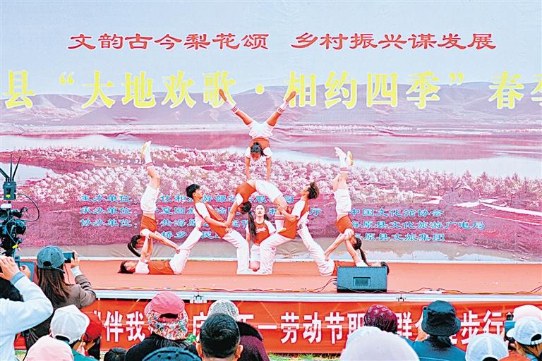 4月19日至21日,由文化和旅游部公共服務(wù)司主辦、自治區(qū)文化和旅游廳及中國文化館協(xié)會承辦、海原縣協(xié)辦的“大地歡歌·相約四季”春季村晚成果展示活動(dòng),在該縣關(guān)橋鄉(xiāng)方堡村梨花小鎮(zhèn)火熱舉辦。繁花綻放的數(shù)千畝百年梨園中,歌舞、魔術(shù)、戲曲、雜技等文藝表演輪番上陣、亮點(diǎn)紛呈;海原特色牛雜、燒烤、章魚小丸子、烤馕、手抓餅、肉夾饃、手工洋芋擦擦等鄉(xiāng)味濃郁的特色美食讓人回味無窮。剪紙、刺繡等非遺國潮集市人頭攢動(dòng),漢服游園者絡(luò)繹不絕,“璀璨梨園”篝火晚會更是讓游客流連忘返。