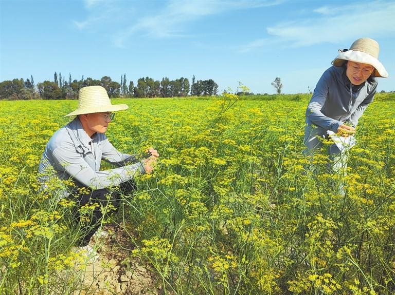 “種茴香省工省力,耗水少,市場價格相對穩(wěn)定,在每斤5元以上,效益比較可觀。今年我們種植了鐵桿茴香,通過施入生物菌肥‘保根120’,茴香表現(xiàn)出了優(yōu)異的抗重茬、防根腐等效果,預計產(chǎn)量不錯?!秉S花農(nóng)場產(chǎn)業(yè)發(fā)展部副部長張月娥介紹,她一邊觀察茴香長勢,一邊測定土壤墑情。
