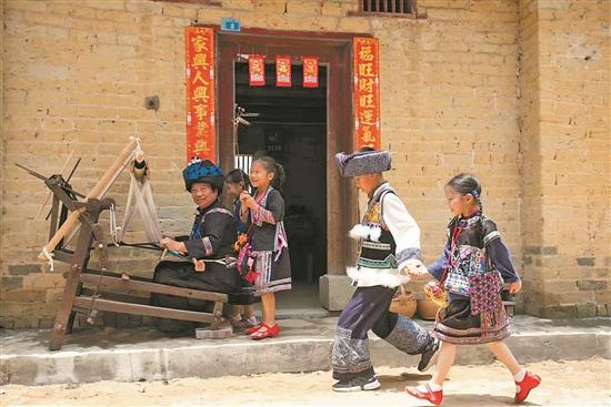 走進(jìn)連山壯族瑤族自治縣福堂鎮(zhèn)太平村委會(huì)金龜村,近年打造的鄉(xiāng)村文化空間——壯瑤傳統(tǒng)風(fēng)貌園一下子就驚艷了游客。在風(fēng)貌園的錦繡非遺館里,游客可以欣賞到上百件明清時(shí)期的珍貴壯錦藏品;在非遺工坊和研學(xué)基地里,游客可以參與研學(xué),沉浸式體驗(yàn)壯錦的編織與文創(chuàng);在染料種植科普?qǐng)@里,游客還可以與自然親密接觸,增長(zhǎng)見(jiàn)識(shí)……