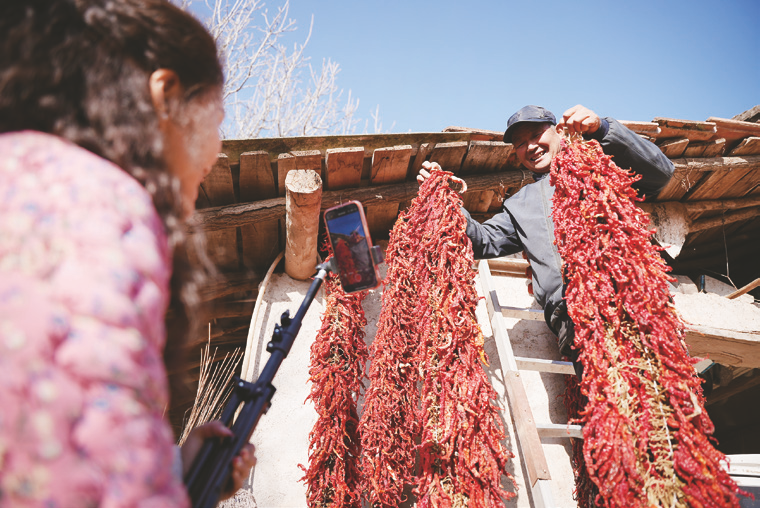 返鄉(xiāng)女青年直播為家鄉(xiāng)辣椒代言 趙彬瑞 攝