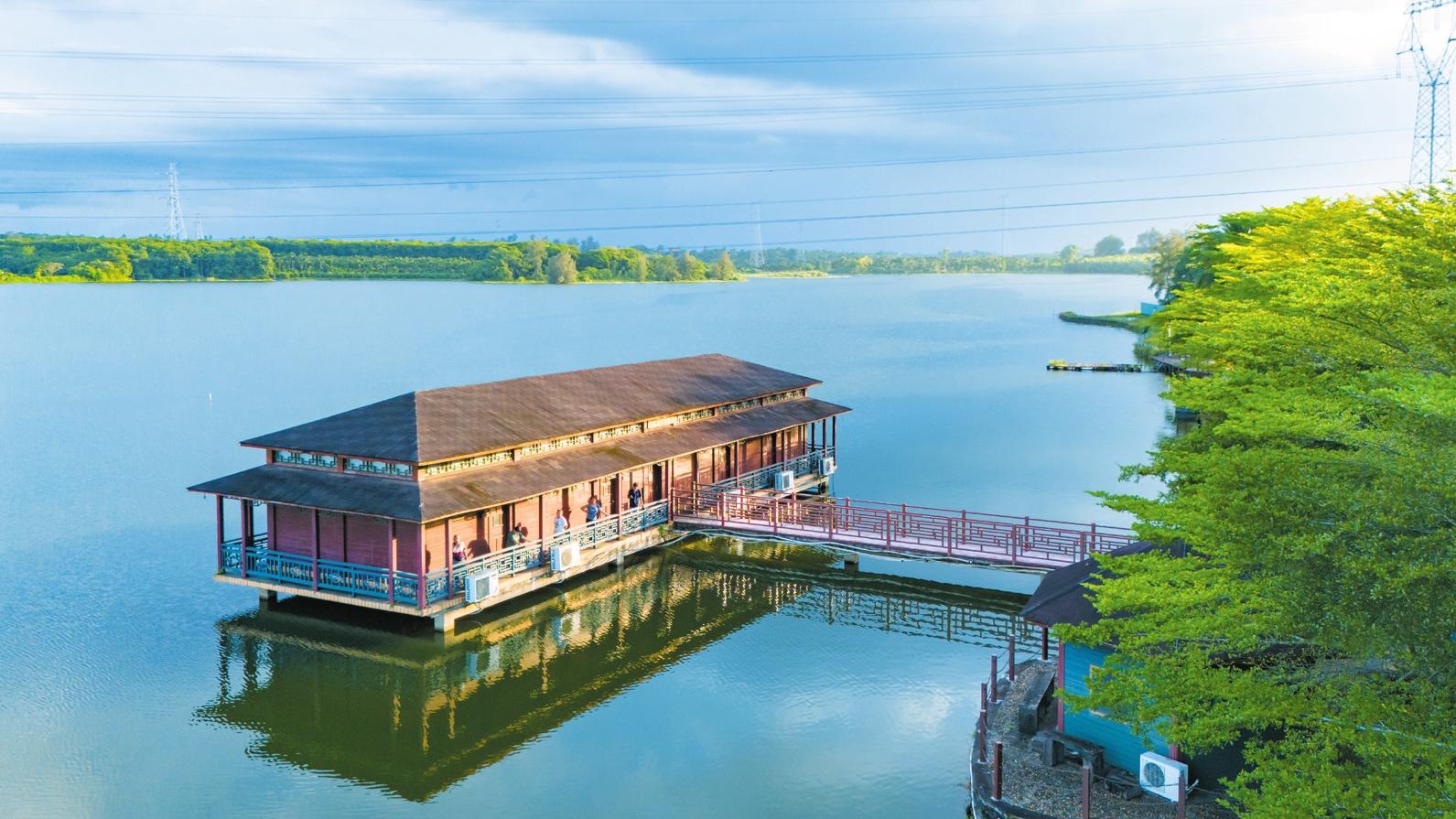 24日,記者在瓊山區(qū)紅旗鎮(zhèn)蘇尋三村委會泮邊村泮邊休閑農(nóng)莊看到,依水而建的長廊宛若玉帶,市民游客正聚在長廊處品茗、釣魚。農(nóng)莊內(nèi),有幾間極具特色的民宿房間,工作人員正為即將到來的度假團隊開展房間打掃服務(wù)。