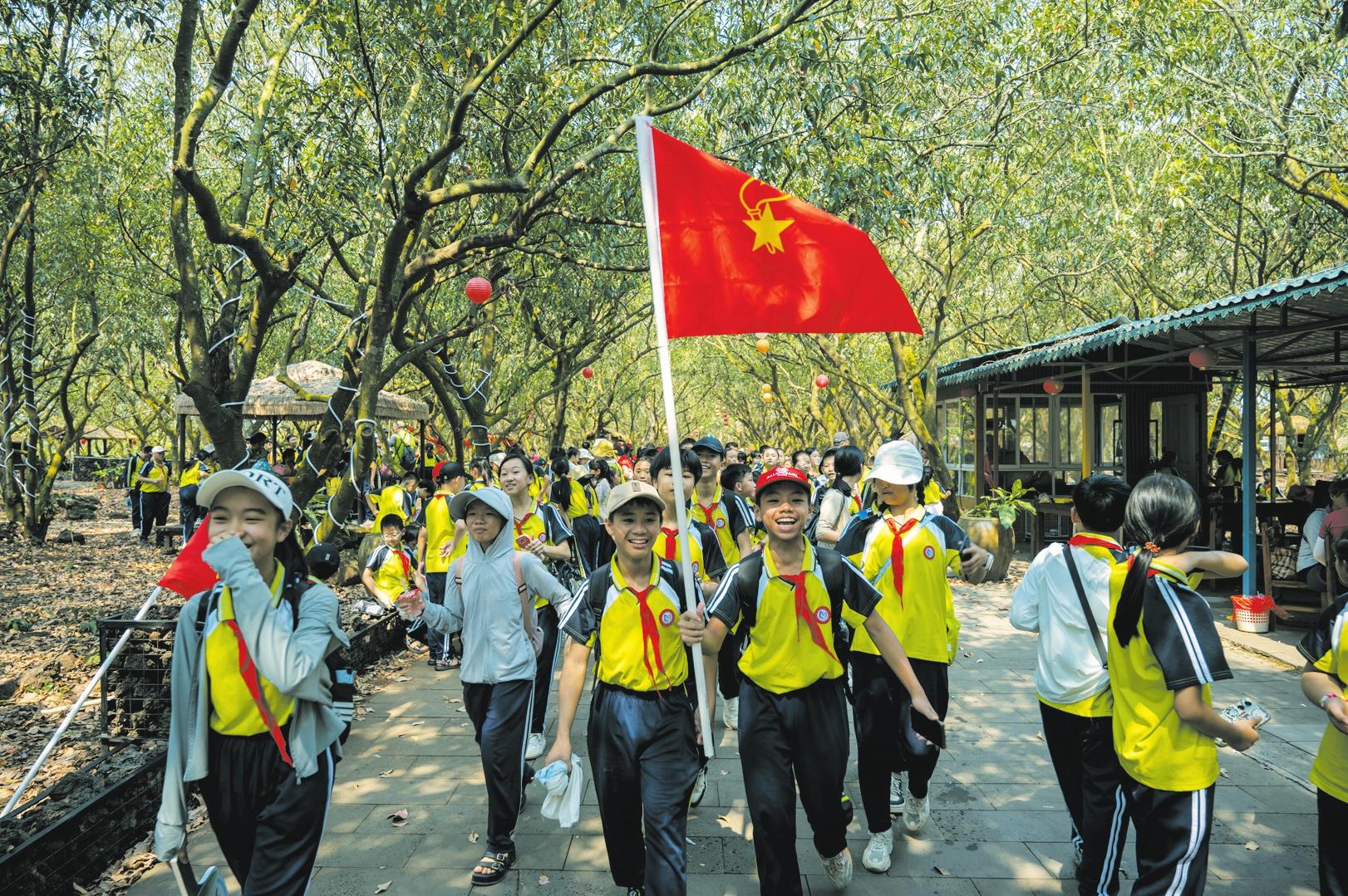 在位于秀英區(qū)永興鎮(zhèn)的馮塘綠園內(nèi),學生們正在觀光研學 記者 石中華 攝