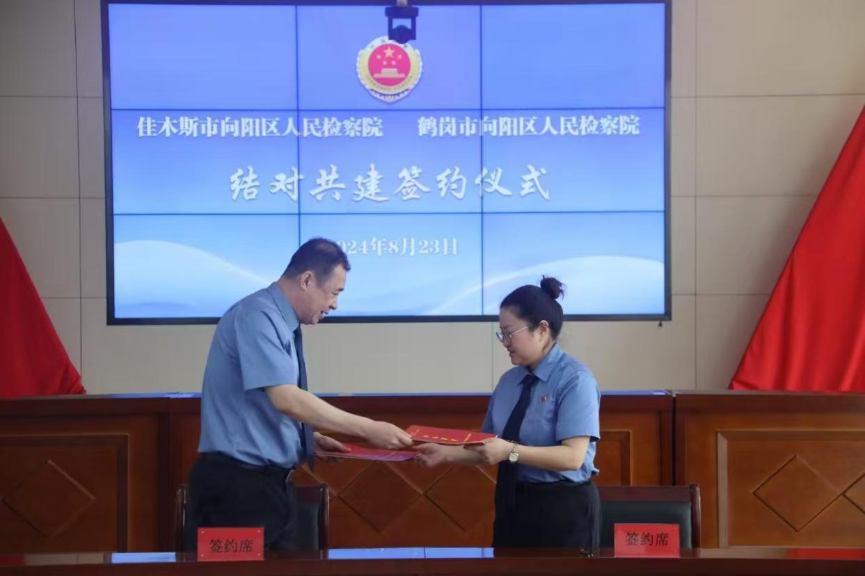 座談交流,凝聚共識。在隨后召開的座談會(huì)上,兩院檢察長分別介紹了本院基本情況,互相通報(bào)了今年以來在政治建設(shè)、業(yè)務(wù)建設(shè)、隊(duì)伍建設(shè)、品牌建設(shè)、典型案例等方面取得的工作成效;圍繞《結(jié)對共建工作方案》進(jìn)一步開展了研討磋商,就共建目標(biāo)任務(wù)、具體實(shí)施路徑等方面進(jìn)一步細(xì)化了措施,確定了隊(duì)伍建設(shè)、業(yè)務(wù)協(xié)作、智慧檢務(wù)、檢察文化等方面的合作共識。在結(jié)對共建簽約儀式上,成立了由雙方主要領(lǐng)導(dǎo)任組長的結(jié)對共建工作領(lǐng)導(dǎo)小組,兩院檢察長現(xiàn)場簽訂了《結(jié)對共建協(xié)議書》,標(biāo)志著位于佳木斯和鶴崗的兩家向陽檢察攜手啟航,共譜新篇。