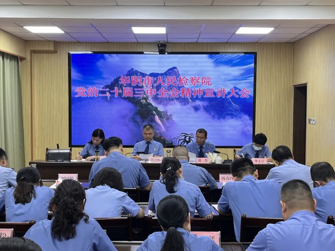 9月2日,陜西省渭南市華陰市人民檢察院組織召開(kāi)學(xué)習(xí)貫徹黨的二十屆三中全會(huì)精神宣講大會(huì),院黨組書(shū)記、檢察長(zhǎng)燕崇綱作宣講報(bào)告,全體干警參會(huì)。