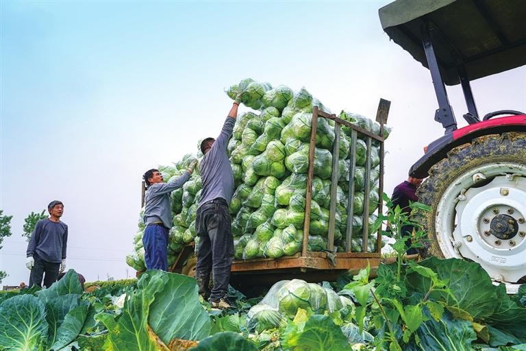 鄧州市九龍鎮(zhèn)前河村菜農(nóng)正在將豐收的蔬菜整車外運(yùn) 趙蕾 攝