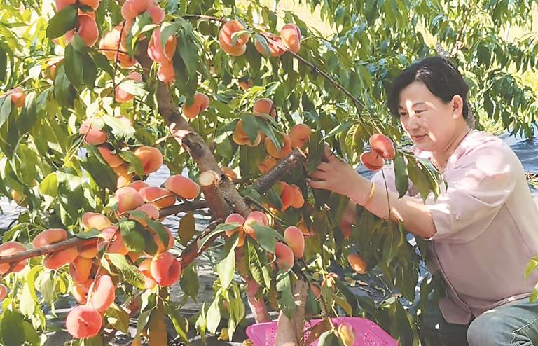 在發(fā)展特色農(nóng)業(yè)種植的過程中,阜寧鎮(zhèn)建新村與南寒村合作,在原有的4棟溫室大棚中,種植新引進(jìn)的400多棵蟠桃樹,種植面積約2000平方米,經(jīng)過半年的辛勤培育,成活率達(dá)到了95%。眼下,蟠桃樹結(jié)滿了粉嫩嫩的桃子,一陣陣清甜的桃兒香撲鼻而來,讓人不禁垂涎欲滴,現(xiàn)日采摘量約50余斤。近日,阜寧鎮(zhèn)還舉辦了第二屆蟠桃采摘節(jié),當(dāng)天有千余名市民及游客被蟠桃吸引,步入桃園里快樂采摘。