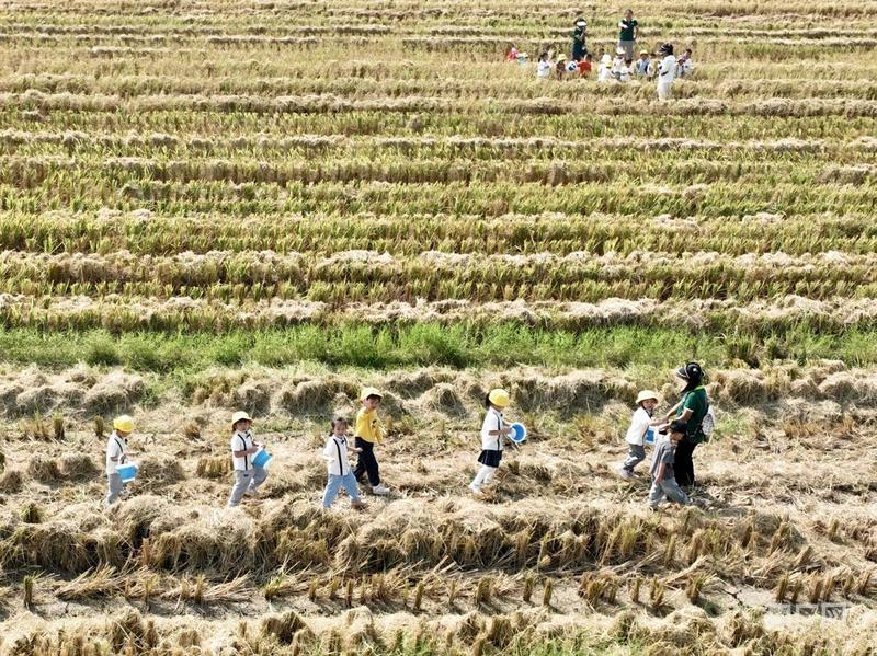 心懷禾下夢,惜糧記心中。在10月16日世界糧食日到來之際,湖南省永州市冷水灘區(qū)組織500多名幼兒園小朋友來到田間地頭上了一堂別開生面的勤儉節(jié)約教育課,讓孩子們感受豐收的喜悅,體驗勞動的艱辛,懂得愛糧、惜糧的重要性,形成愛糧節(jié)糧的社會風(fēng)尚。