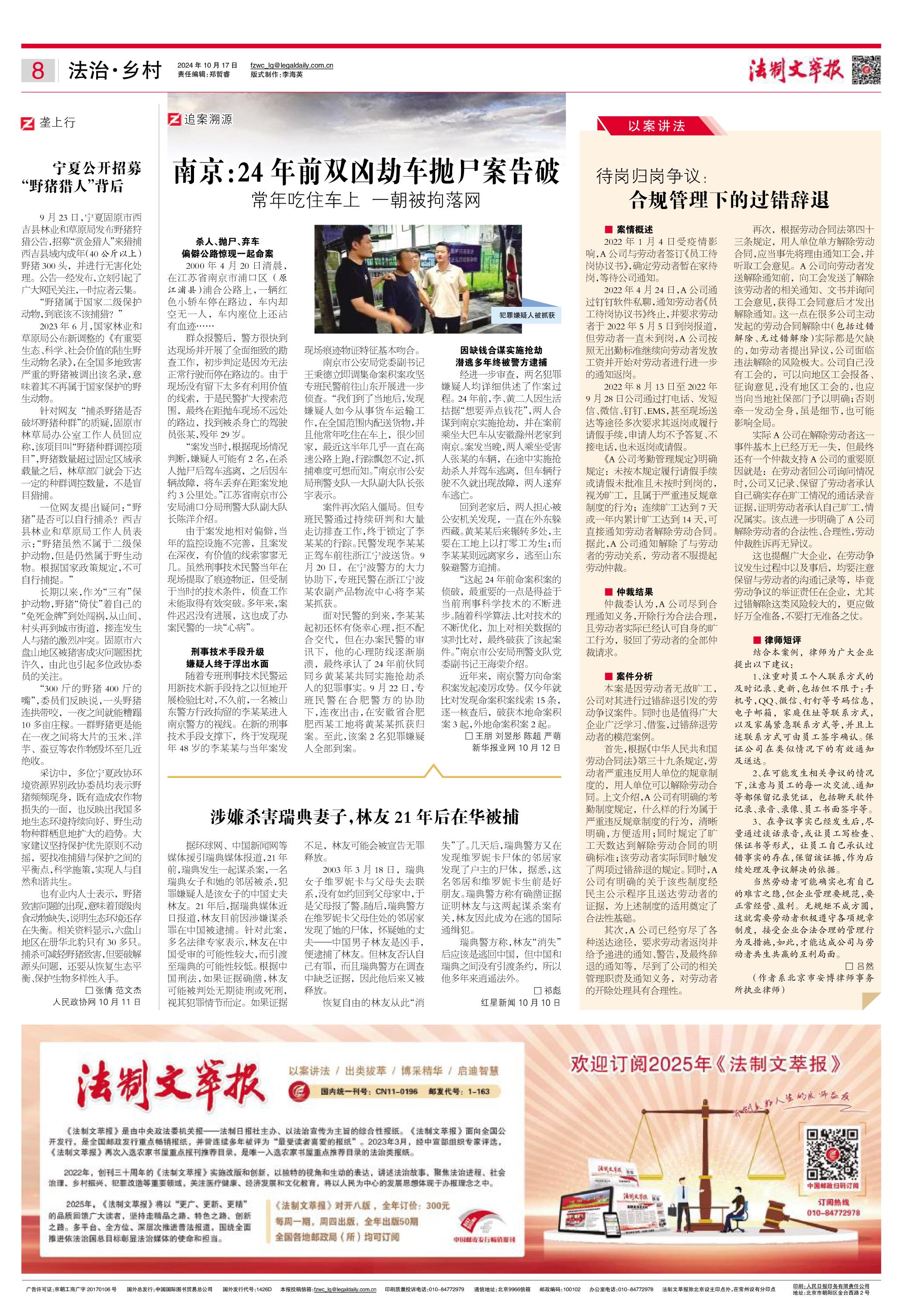 2024年10月17日《法制文萃報》總第2826期8版