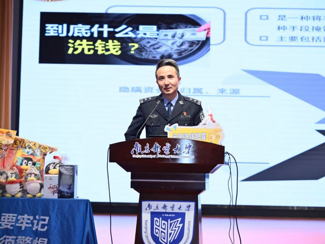 在主題宣講中,南京市公安局經(jīng)偵支隊(duì)第一偵查大隊(duì)教導(dǎo)員張熙以典型案例為切入點(diǎn),向同學(xué)們?cè)敿?xì)、生動(dòng)地講解了洗錢(qián)的基本概念、不同形式的犯罪手段以及反洗錢(qián)的重要意義。洗錢(qián)犯罪活動(dòng)不僅嚴(yán)重破壞金融秩序,還可能導(dǎo)致個(gè)人信息泄露、財(cái)產(chǎn)受損,要時(shí)刻保持警惕。