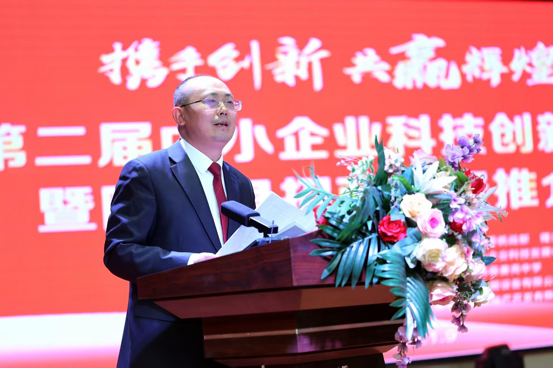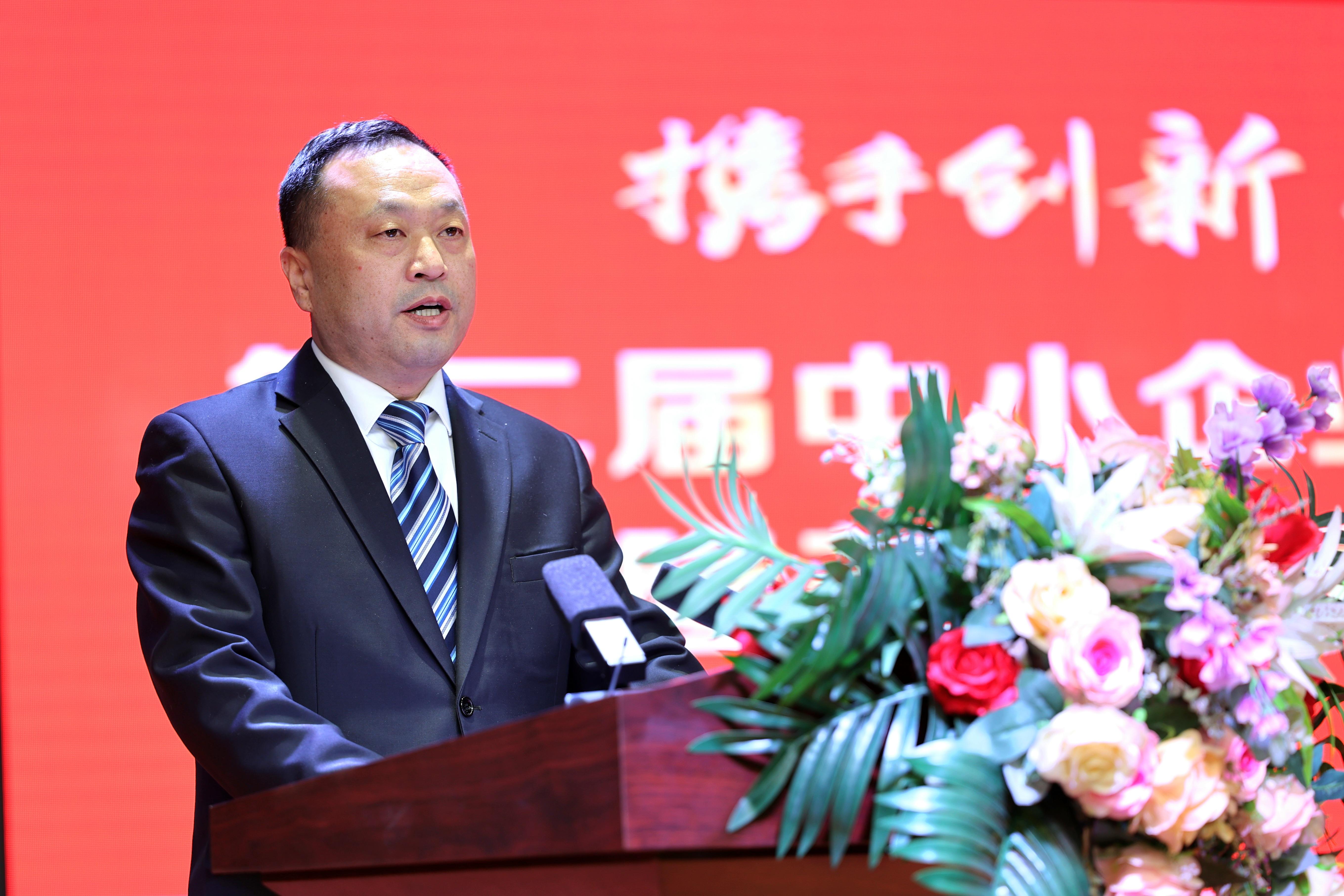 中國中小商業(yè)企業(yè)協(xié)會執(zhí)行會長任興磊致辭。他指出,中小企業(yè)是支撐中國經(jīng)濟的重要力量,我們一定要扎根祖國大地,打牢發(fā)展基礎,掌握核心競爭力,以一往無前的奮進姿態(tài),書寫更加精彩的創(chuàng)業(yè)篇章,讓更多更具發(fā)展?jié)摿Φ膬?yōu)秀企業(yè)綻放隆堯大地,走向全國。