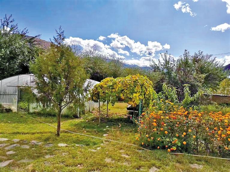 林芝市巴宜區(qū)米瑞鄉(xiāng)麥娘麥村一戶村民的庭院綠化環(huán)境。記者 劉楓 攝
