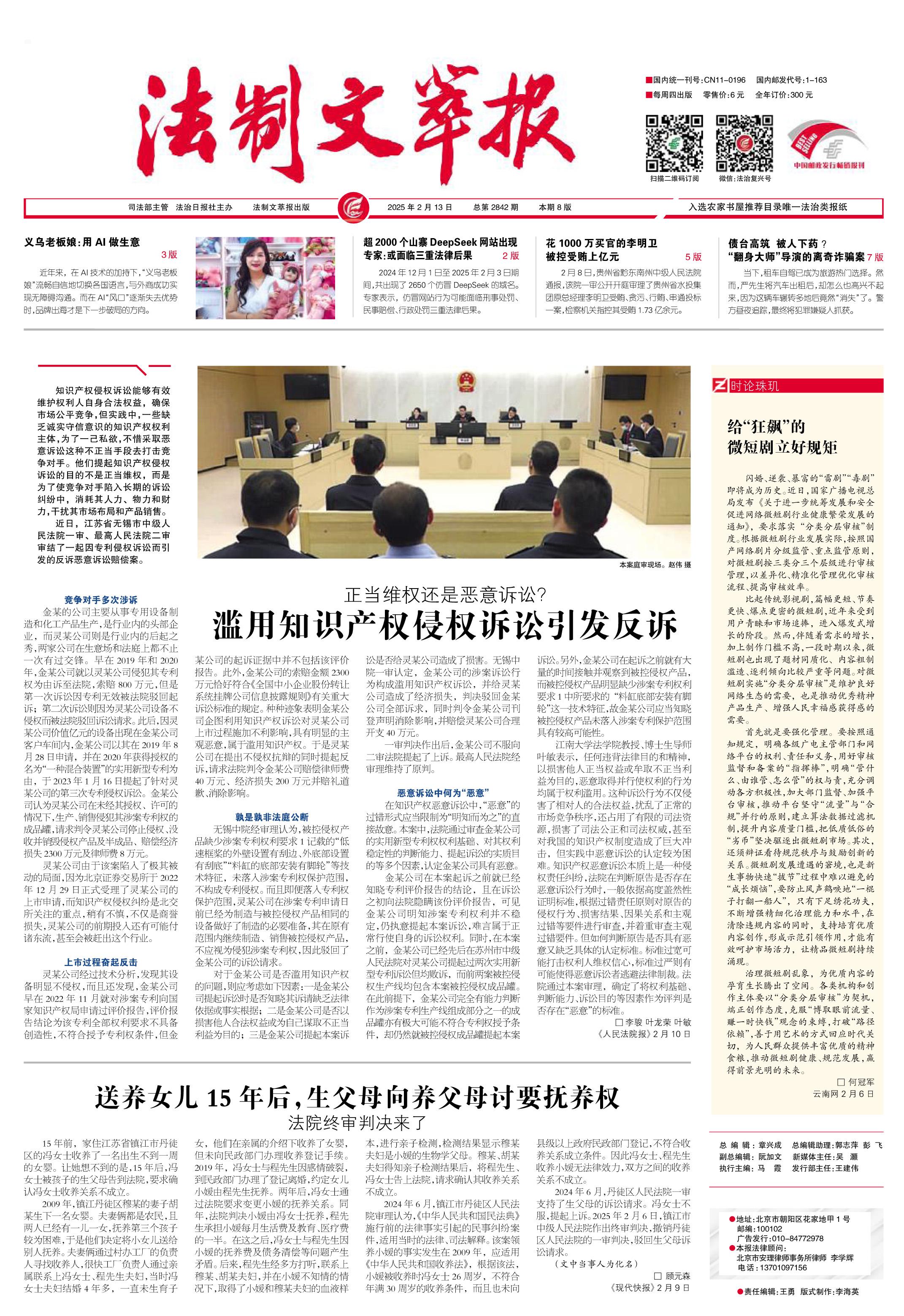 2025年2月13日《法制文萃報(bào)》總第2842期1版