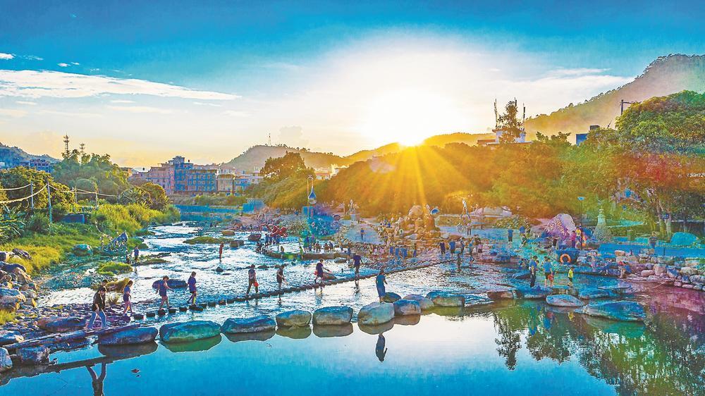 游客在金谷溪岸文藝村享受快樂(lè)的休閑時(shí)光(資料圖片)